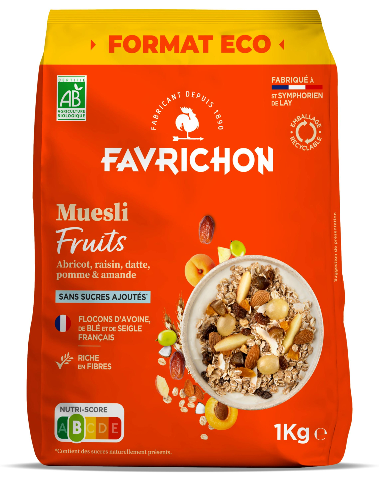 Amestecul bogat de cereale integrale, cu fulgi de grau, secara si ovaz, este completat de un continut generos de fructe precum struguri dulci, curmale, caise, migdale, mere si nuca de cocos. Semintele de floarea soarelui si petalele de grau adauga textura si savoare, oferindu-ti un mic dejun satios si natural.