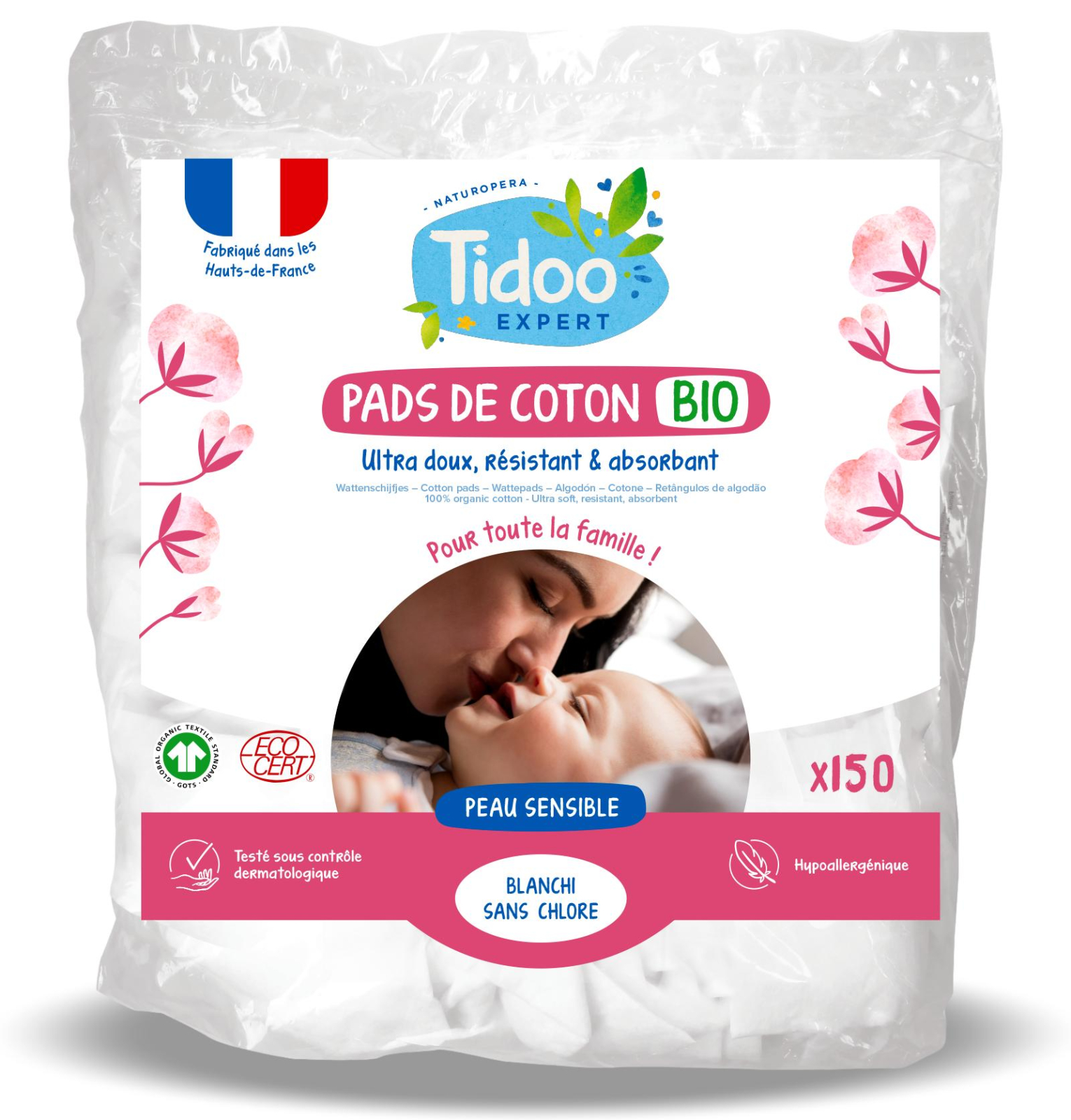 Dischetele Tidoo sunt ideale pentru pielea sensibila a bebelusilor datorita compozitiei lor din bumbac 100% organic, o fibra naturala, fara clor si fara OMG.